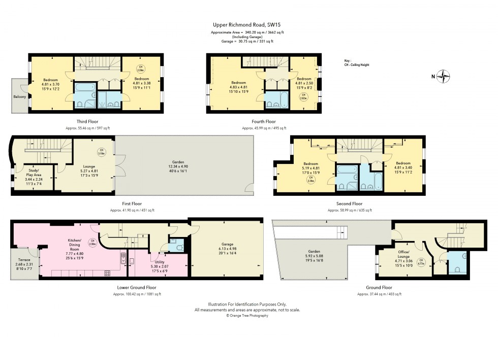This substantial and beautifully presented six-bedroom terraced family home offers spacious living accommodation with a wealth of versatile rooms and stylish finishes throughout. With four bathrooms, three reception rooms, and an expansive family kitchen/dining room, this property is perfect for growing families and those who enjoy entertaining. The property boasts French doors that open to a large, well-maintained garden, creating a seamless connection between indoor and outdoor living. A private balcony, garage, utility room, and study further add to the appeal of this superb home.
